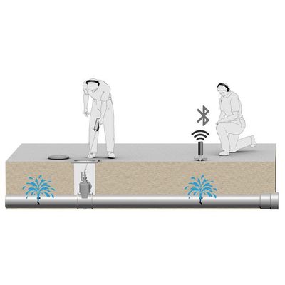 Pre-locating means roughly localizing leaks by systematically listening to pipe network contact points which are directly accessible such as hydrants or valves. The principle is relatively simple: more intensive noise = leak is closer, less intensive noise = leak is farther away. This principle allows narrowing a leak to a certain section between two contact points. The accuracy achieved is usually not sufficient to start excavating. Therefore, subsequent pinpointing is recommended.