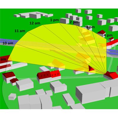 We offer the following services: Measurement and calculation of brightness and glare. Evaluation according to the "Notes on the measurement, assessment and reduction of light immissions" of the LAI. Calculation of shadow cast and permanent shading during the course of the day and year and evaluation according to DIN 5034-1.