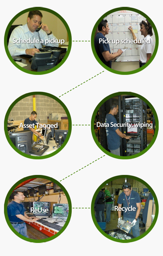 TechnoCycle offers complete turnkey logistics solutions, ensuring that you do not have to spend time or resources managing the process of electronic asset disposal. We provide: Professional On-Site Pickup Services. Manifest / weights. Drive / Media Erasure or Destruction. Regional and Nation-wide Pickup Available. After-hours and Weekend Services.