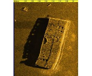 Side-scan sonar also emits a fan-shaped sonar pulse from the boat down toward the seafloor. The intensity of the acoustic reflections from the seafloor is recorded in a series of cross-track slices to form an image of the seafloor and objects on the seafloor within the swath of the beam. Side-scan sonar is commonly used to locate potential seafloor hazards such as former bridge piles and wrecks, mapping seafloor utilities, evaluating reefs, mapping sea grass and performing grain size surveys. The high resolution images are capable of imaging objects as small as several inches in size.
