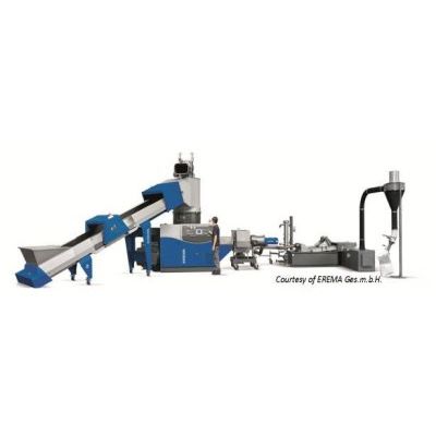 - Collection of PE-LD films used in agriculture and industrial packaging, pre-washing, grinding, washing, separating, drying and melt-filtration/re-granulation and processing into refuse bags;