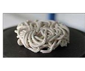 Discrete modelling of fibrous structure from 3D tomography images: PFC3D model (on the left) and photograph of a real sample (on the right).