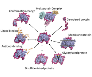 A particular advantage of HDX-MS is the structural characterization of large or multi-protein complexes. Many cellular processes require assembly or interactions between multiple proteins, and the study of large complexes by standard methods, such as X-ray crystallography, and NMR is often prohibitively challenging. With advances in liquid chromatography systems and mass spectrometry resolution, it is now possible to characterize large proteins and protein complexes using a bottom-up approach with HDX-MS.