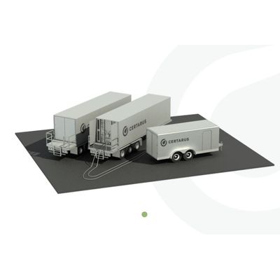 - Trailer mounted CNG decanting station capable of delivering gas at specific pressures and temperatures