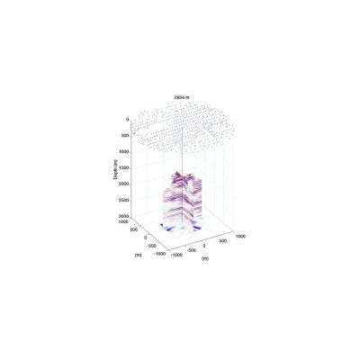 This animation above shows two intersecting images processed from iDAS seismic data acquired with the dynamite shot pattern indicated. The iDAS records the seismic signal at every point along the optical fibre with each source activation leading to much greater receiver coverage than is achievable with conventional borehole seismic methods. The result is a processed image which benefits significantly in SNR improvements through the migration of data with such dense spatial sampling.