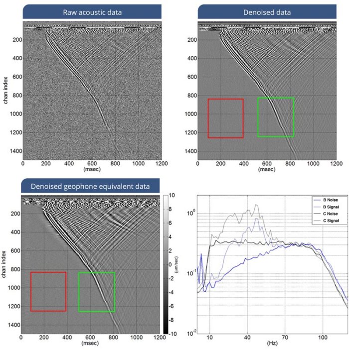 Silixa has utilised its expertise in DAS to invent a new way to significantly improve the signal to noise ratio of its measurements. iDAS natively measures strain rate. Geophone equivalent processing converts this into units proportional to axial particle velocity equivalent to the output of a geophone. This also flattens the noise spectrum.
