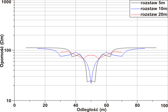 During profiling, resistivity in distance direction are estimated. The result is a variability of apparent geoelectrical resistance curve along the profile line. Interpretation of the obtained curves (field) is to determine changes in the horizontal substrate, tectonic, fractures zones and their shape, inserts of high and low small layers or facies changes within the same layer as well.