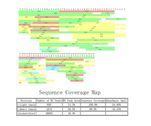 In this project, we analyzed the full-length sequence of an antibody product sent from one of our customers. To ensure 100% sequence coverage, we selected 4 enzymes for protein digestion, based on the predicted antibody sequence. The sequence mapping results showed 100% sequence coverage.