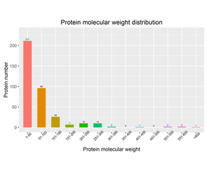 Note: The horizontal axis represents the molecular weight of proteins, and the vertical axis represents the number of proteins.