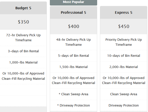 This size bin is for CLEAN FILL ONLY (dirt, rock, brick, concrete, tile). If you are needing a bin for trash or mixed debris, then we can deliver a 10-yard container. Bins for trash start a 10-yards.