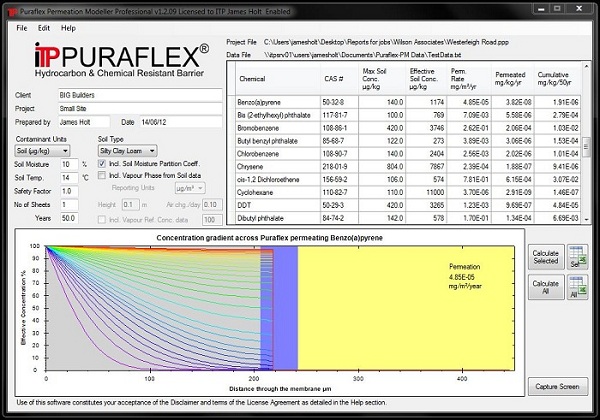 Soil analysis results can be sent to us and we will produce a report using the PPM software to show how Puraflex would cope when exposed to the site specific contamination.