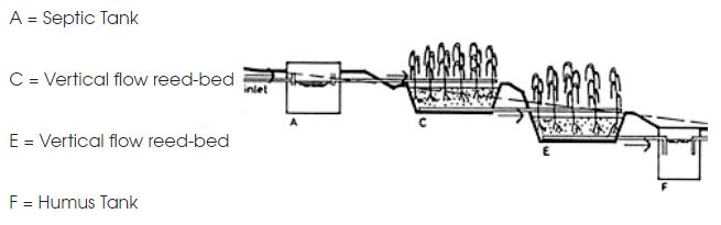 Multi-stage reed-bed systems, incorporating two stages of vertical flow. They work on a `fill and drain` system, where one bed fills over 12 hours whilst the other one drains and vice versa. The idea is that as the effluent drains out of the gravel, air is pulled in and helps to form an aerobic bacterial colony on the gravel surface to digest the pollutants.