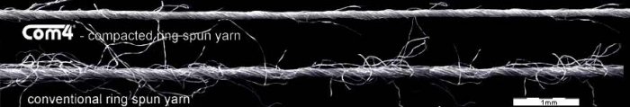 Our complete spinning technology is supported by a top-class technology in the area of preparation of a strand and rove (regulation drawing frame RSB – D 35, roving machine F 15), and spinning machine K 44 for manufacturing of compact ring yarns. Our installed spinning technology provides the possibility to test processability of new materials and patterning of small items of yarns and semi-products. Patterning of hybrid technical and functional mixed yarns made of synthetic, natural, metal and coated fibres