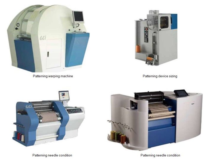 This is a computer-controlled assembly patterning device for preparing CCI woven samples. The equipment used to verify the workability of new materials, simulating the conditions of production and operational preparation of color, material, detention and dostavových variants for each fabric pattern.