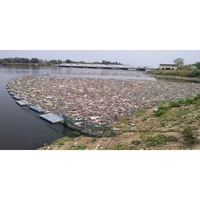 This Floating Barrier Arrests trash and Plastics, allowing water to flow past. Entirely designed in India, this requires no fuel or energy to arrest solid waste in rivers or streams. Adaptation of the FTB design in extremely shallow river waters. This FTB is very heavy duty construction and able to withstand the strong flows and floods.