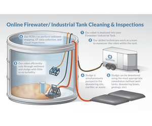 There is no need to shut down and drain your tank or to send people into a confined space. Our robots can deploy into the tank through as small as a 24-inch round hatch, remove the sludge, and return the filtered water or chemicals.