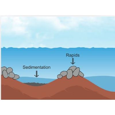 Sedimentation is the tendency of particles in suspension to settle out of the fluid in which they are entrained, and come to rest against a barrier. Troughs and crests present in the riverbed helps the river water to sediment its impurities in the flowing channel. Impurities also settle down on the banks of the rivers. We emulate this by using sand bags and other local material with excellent results.