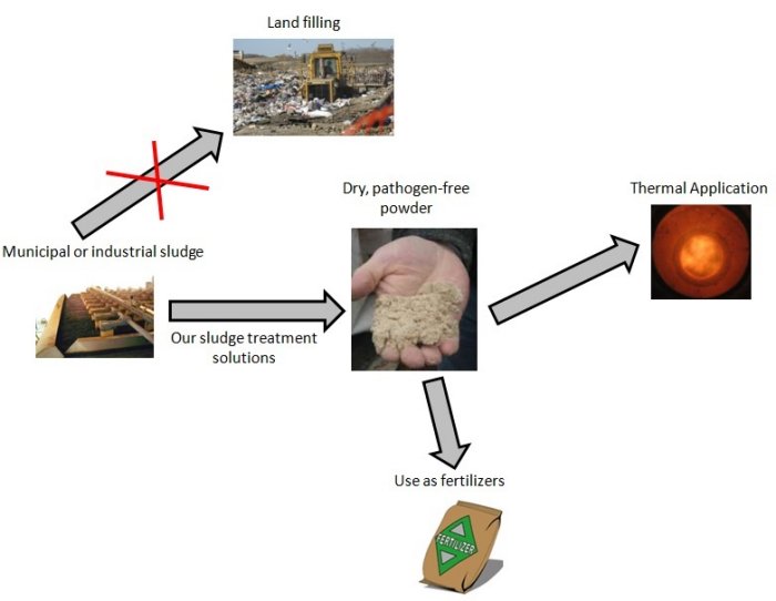 - in the case of municipal sludge, the treated product can be used as a high value-added fertilizer (Class A) for the agricultural industry;