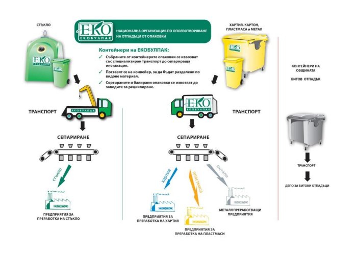 Currently the organization has 5 working sorting facilities situated in the big Bulgarian cities: Sofia, Sliven, Gabrovo, Ruse and Pazardjik. By the end of 2009 another 3 installations are to be completed and put into operation.