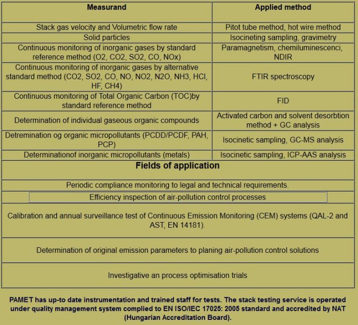 Accredited independent laboratory for testing of air-pollution sources.