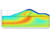 Simulations are made using the multi-physics software COMSOL™. Of special interest is to study the temperature change due to a seepage increase, especially at internal erosion which is one of the major reasons for embankment dam failures. By modelling we can demonstrate the usefulness of temperature monitoring for seepage detection. Example of internal erosion development through a moraine core can be seen in the figure.