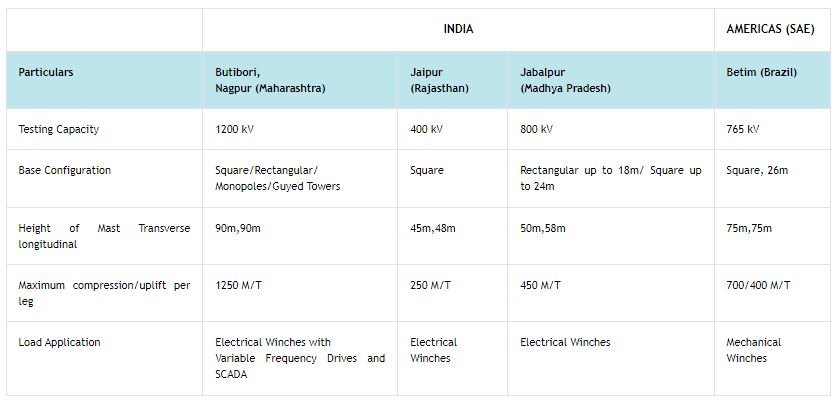 KEC has the distinction of being the only Transmission Tower Company in the world to have four tower testing stations. It has three test stations in India and one in Brazil. These testing stations serve the objective of satisfying customers about design parameters of tower by subjecting Proto-Towers to various test load conditions. The Company’s Nagpur, Maharashtra testing station is one of the few testing stations in the world capable of testing towers up to 1,200 kV. The tower testing station at Brazil is the largest in the Americas. All testing stations are strategically located near manufacturing facilities. They are capable of testing all types of towers – Lattice Towers, Guyed Towers, Tubular and Mono Poles. The Company can provide complete testing solutions to any type of transmission line requirements.