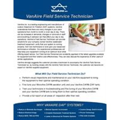 VanAire is proud to offer Field Service Technicians. Schedule an onsite visit from one of our technicians for a complete visual inspection of your company owned VanAire equipment, training of your onsite technicians or recommendations for upgrades or updates to your system.