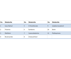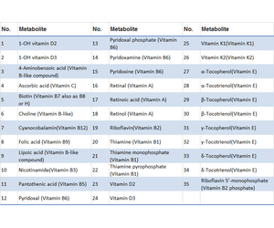 Vitamins are fundamental substances constituting the human body, and essential for maintaining life activities. Although vitamins is vital for many biological activities, only limited amount of vitamins are needed. Vitamins have multiple functions in organisms. For example, vitamin D has a hormone-like function, and regulate mineral metabolism and tissue growth. Vitamin C and E function as antioxidants. Most vitamin B family members function as enzyme cofactors and regulate enzyme activities. MtoZ Biolabs has established a platform for analyzing multiple types of vitamins. With our well-established analytical platform and optimized sample preparation methods, we are able to accurately analyze over 70 types of vitamins even in low abundance.