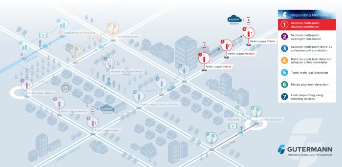 The rough location of the leaks to be located and repaired are unknown. But there is a higher sense of urgency, either because a customer has called in to report the leak or because there has been a sudden surge in night flow in a specific zone. Repair time is critical to protect the integrity of the pipe and road infrastructure. The measurements have to be done on site with the goal to have the results immediately in order to take swift repair action.