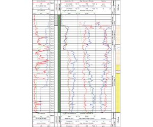 This tool measures the natural radiation emitted by various strata. Because the most common radioelement is potassium-40, natural gamma log is usually a clay indicator. Clean sandstone or limestone, free from argillaceous materials are excursions to the left while rich clay and shale formations are excursions to the right.