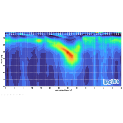 HeeVee performs a graphic interpolation between the different data acquired in the space, which results in a map where the trend of the seismic reflectors can be read, with several different options to improve the visual continuity of the reflectors themselves.
