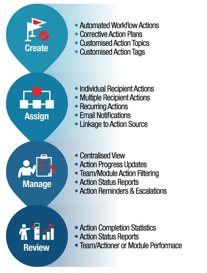 • Increase automation and action close out rates with action reminders, escalations and scheduled action status reports.