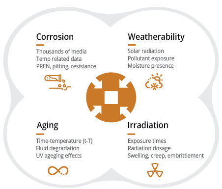 Enviro focusses on four complimentary datasets which provide even more breadth and depth to the information provided within the fully integrated platform of Total Materia. Covering corrosion, weatherability, irradiation and different types of aging effects, Enviro provides a key source of information to design, manufacture and sell products of greater quality and longevity in to the market place.