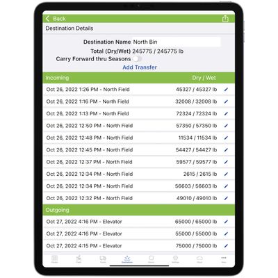 View totals and weight transactions for every field, truck, and destination (bins, bags, elevators, contracts)