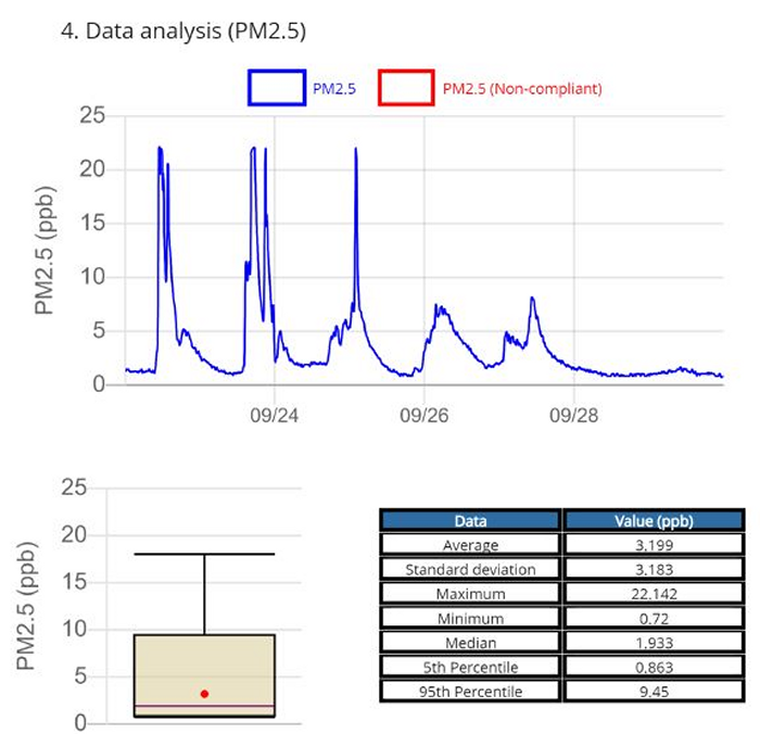 Ecomesure offers online air quality data analysis services on its web platform EcomSaaS. EcomReport is an online automated and customized report editing service that allows clients to have an easier way to process and analyze air quality data. These reports provide an overview of measurements from IoT Ecomesure`s sensors gathered on the web platform as well as their interpretation according to a selection of air quality standards or customized limit values.