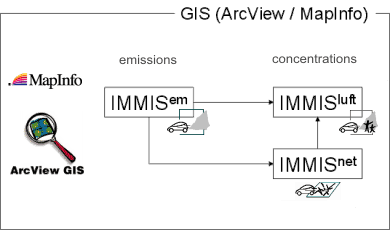 - IMMISmap und IMMISarc - the integration of the IMMIS modules into the geographical information systems (GIS) MapInfo and ArcView, respectively