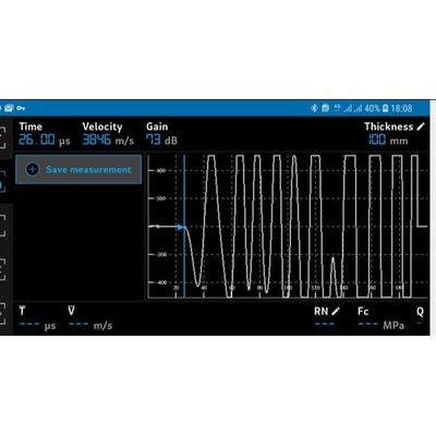 • Viewing the ultrasonic pulse velocity measurement results in waveform and digital form