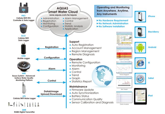 • Automatically register and configuration synchronization for all AQUAS instruments