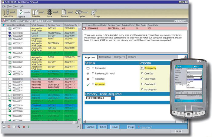 The fluctuating nature of on demand work or help desk activity makes it difficult for organizations to predict the volume of work requests or plan in advance of needs. Any tool that can help better manage the process will improve help desk productivity and enhance customer service. The ARCHIBUS Call Center Wizard can successfully extend responsibility for work request management processing to everyone in the organization. It streamlines the work order process while supporting existing business practices. Compress processing time to increase customer satisfaction and decrease costs, all with minimal training.