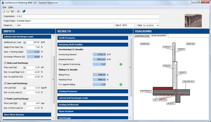 This program is a retaining wall design software that combines geotechnical checks and structural design calculations as one complete treatment of stem wall design.