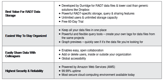 CAPTURE CLOUD offers secure storage for RAD7 data files and makes it easy to organize, analyze, and share data with your colleagues.All users can browse RAD7 data files and issue queries to search for record sets by several criteria such as date range, organization, RAD7 device, and others. Users can be easily added or deleted at any time. When a data file is selected from the list of results, a preview appears immediately. The data can then be analyzed and edited using CAPTURE software. Any modifications made to the data file can be saved to disk or back to the CAPTURE CLOUD server.