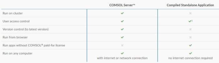 COMSOL Server™ has exactly the same computational demands per user as COMSOL Multiphysics®. Through applications, COMSOL Server™ gives users access to the same powerful simulation technology that is found in COMSOL Multiphysics®.