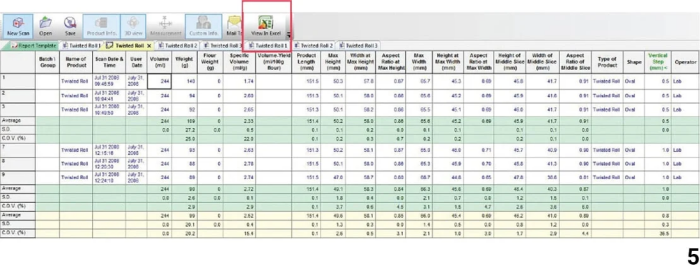 Product Density, Volume, Weight, Specific Volume, Length, Surface Area, Max Height, Width at Max Height, Aspect Ratio at Max. Height, Max Width, Height at Max. Width, Aspect Ratio at Max Width, Height of Middle Slice, Width of Middle Slice, Aspect Ratio of Middle Slice, Minimum Enclosing Circle, Max. Inclusive Square Volume, Trim Percentage, Circumference.
