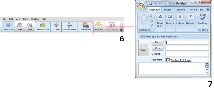 Results can be quickly emailed by clicking on the Mail To button [6] which automatically opens up a message window in Outlook and attaches the active window [7].