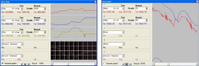 The program has a magnetic compensation option. Providing a coefficient file for magnetic compensation has to be already prepared. (coefficient file can be created with PEIComp program) After magnetic compensation is applied to magnetometer data a compensated file is created. It contains all channels from the source file and newly created compensated data channels. This file can be viewed with PEIView program; raw and compensated magnetometer data graphs can be compared.