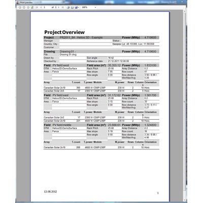 The database holds all components and information necessary for the actual mounting structure. The database can handle complex component lists and assemblies, through which all material can be managed, accessed, and printed. Reports can be documented and printed for specific substructures, independent parts, or for the entire overview of all project relevant information.