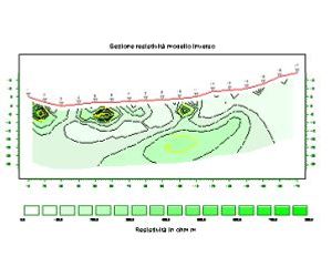 The result is given by a precisely reconstructed real resistivity section (in two dimensions) which is equal to the smallest halved inter-electrode distance, with the possibility of selecting a set of colour shadings to enhance the anomalies that are present in the soil in the best possible way. The results can also be rendered as isoresistivity curves.