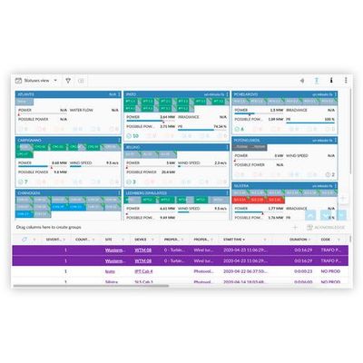 Portfolio shows Real-Time status of your assets portfolio. It includes data such as Power Plants, WTGs/lnverters, and statuses. Portfolio allows to view large portfolios at a glance - up to 500 devic- es on a full HD screen - quickly identifying issues