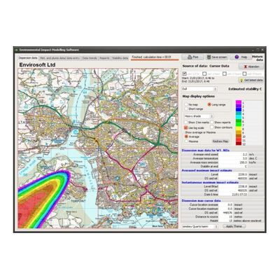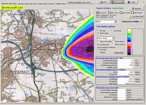 CEMPact has been designed to operate in parallel with our Continuous Emission Monitoring System (CEMS) to provide an estimate of the ground level gas concentrations resulting from the release of exhaust gases from one or more stationary sources at a particular location. CEMPact calculates the mass emission (kg/hr) from the raw emissions data, & then uses the wind speed & direction, ambient temperature, stability class, stack gas temperature etc, to calculate the predicted pollution levels over a selected area.