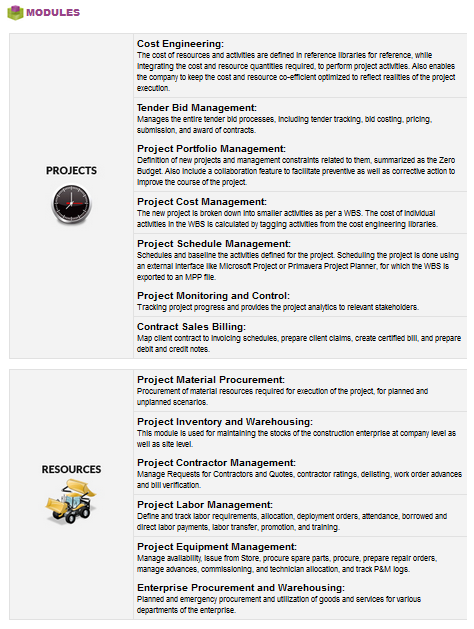 - Plant and Machinery Services: Manage availability, issue from Store, procure spare parts, procure, prepare repair orders, manage advances, commissioning, and technician allocation, and track P&M logs.